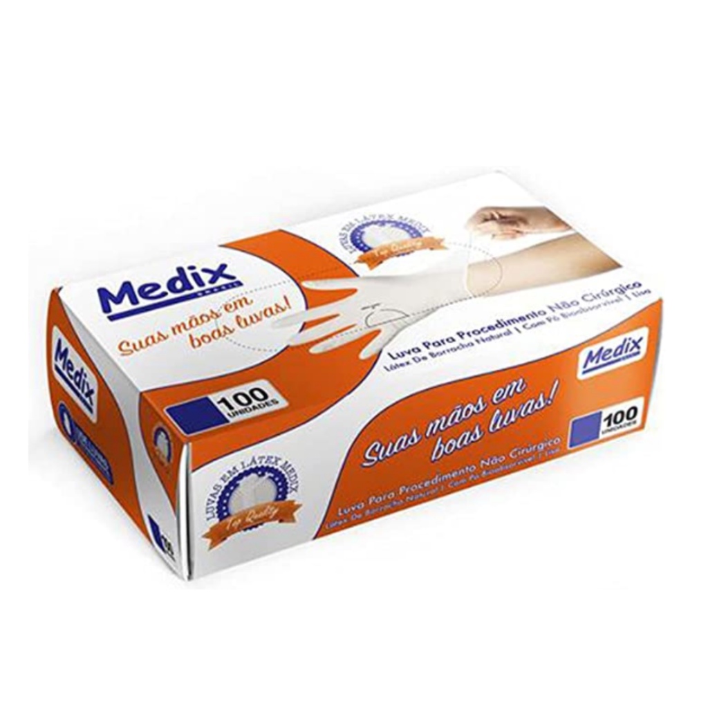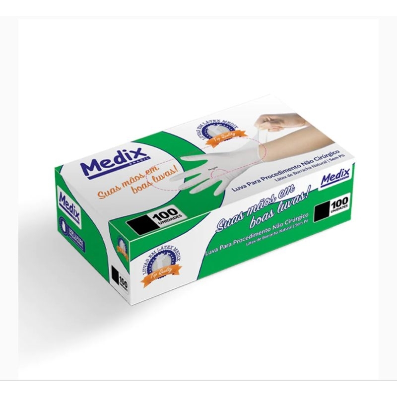 Luva Látex Sem Pó Medix Brasil - Caixa com 100 un.