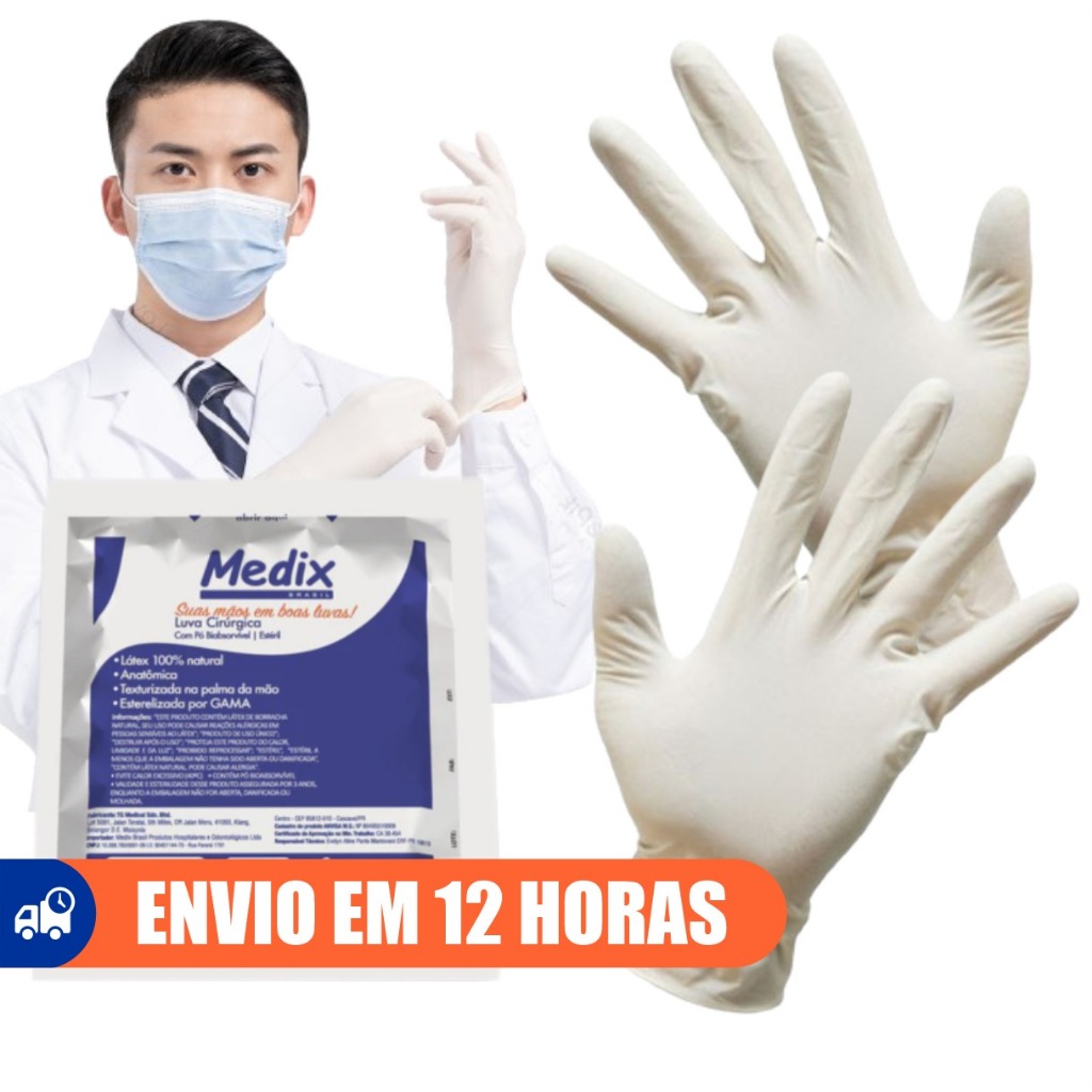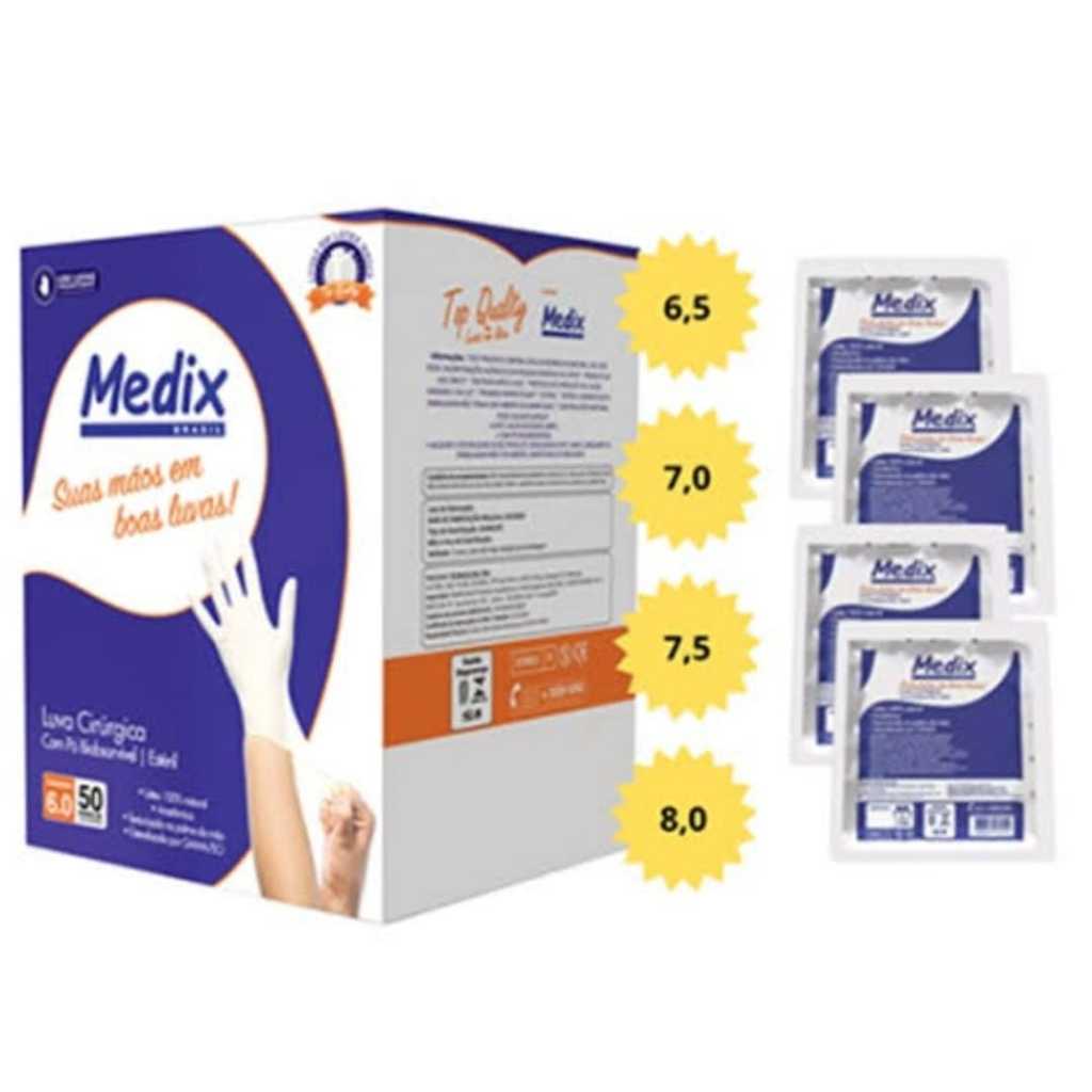 Luva Cirúrgica Estéril de Látex Com Pó Medix Brasil - Com 10 pares