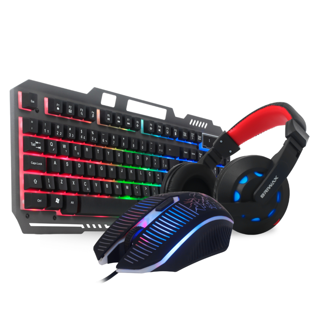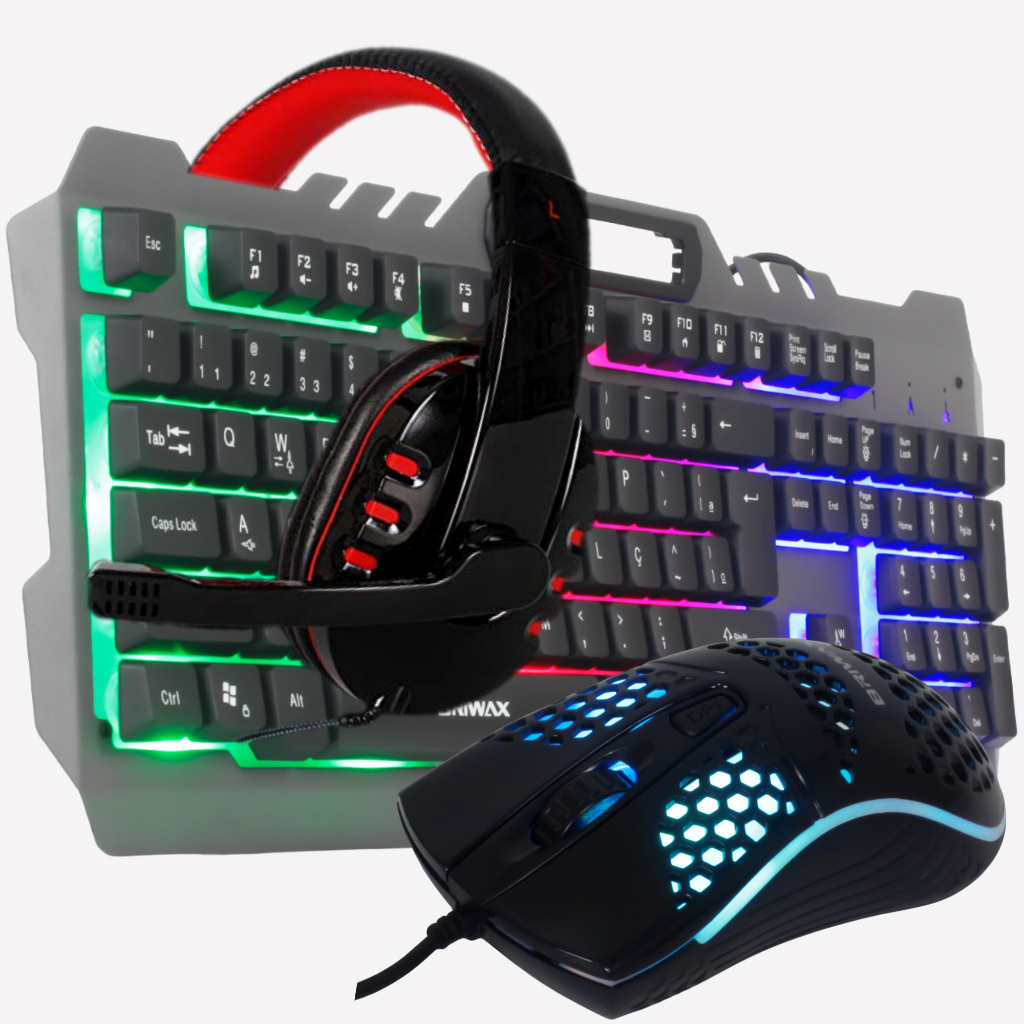 Kit Teclado e Mouse Gamer Headset Semi Mecânico Multimídia Anti-Ghost 3200 Dpi Usb Pc Notebook