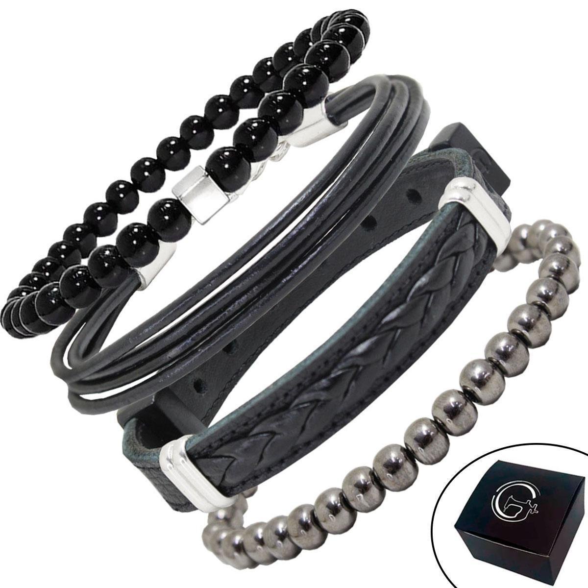 Kit C/4 Pulseiras Masculina de Couro Minimalista Corda Bolinha NE