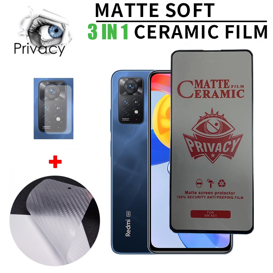 Película Tela De Privacidade 3 Em 1 Cerâmica Fosca Antiespionagem Para Xiaomi Redmi Note 11 11S Pro Plus Mi 11 11T Lite 5G NE