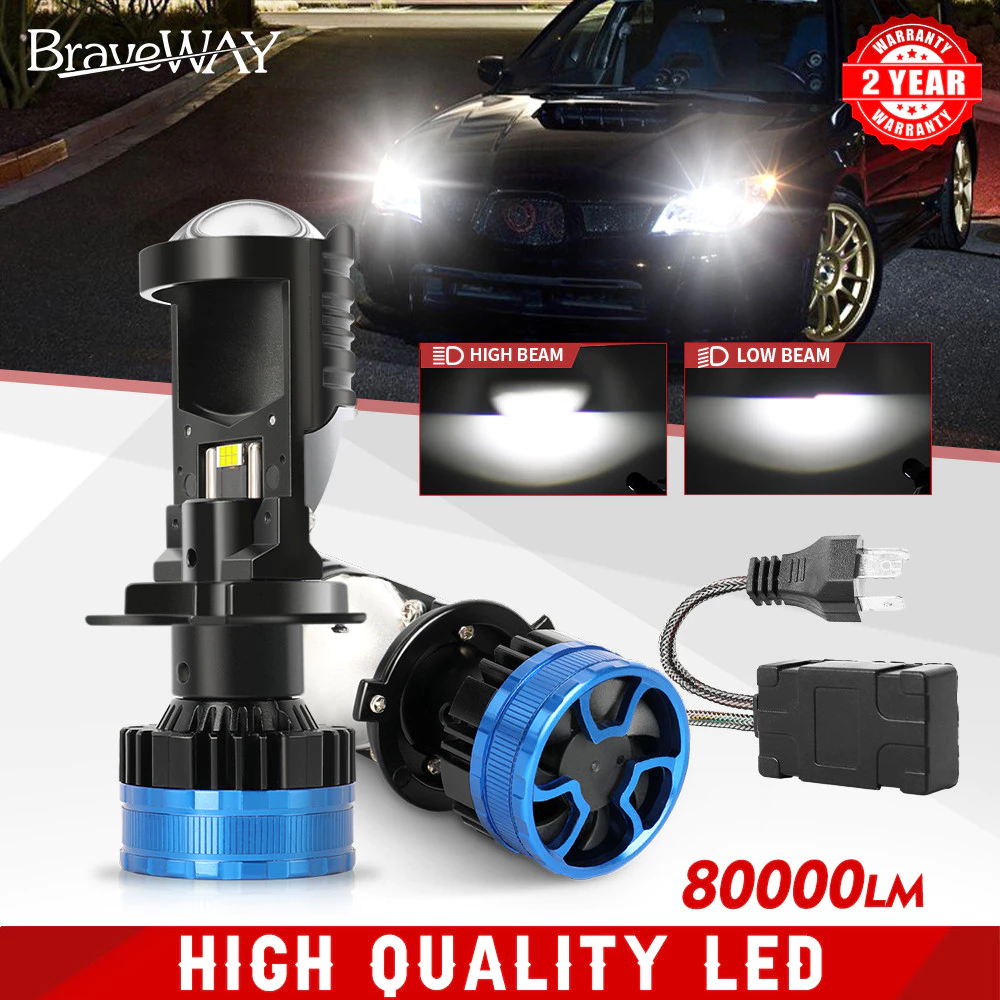BraveWay H4 H7 H11 LHD 80000LM Projetor Mini Lentes Led Farol 9005 HB3 9006 HB4 STG Lâmpada Canbus Carro/Motor Luz De Ne
