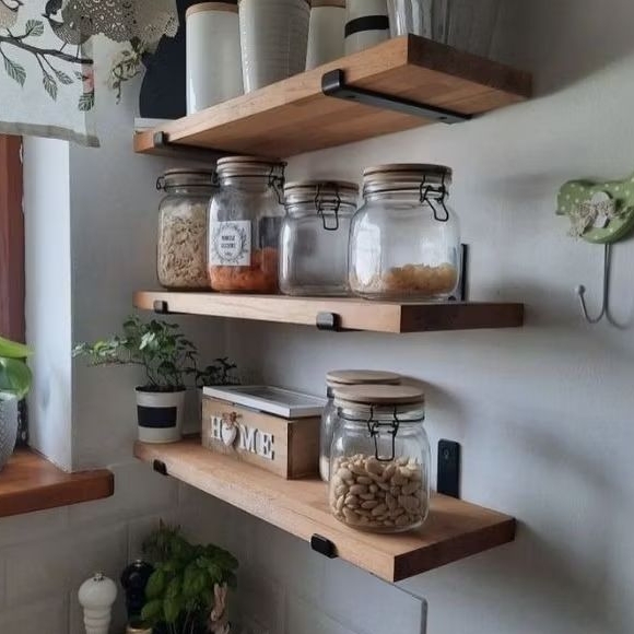 Kit até 4 Prateleiras 60CM estilo industrial madeira pinus com kit instalação e suporte de ferro mão francesa invertida