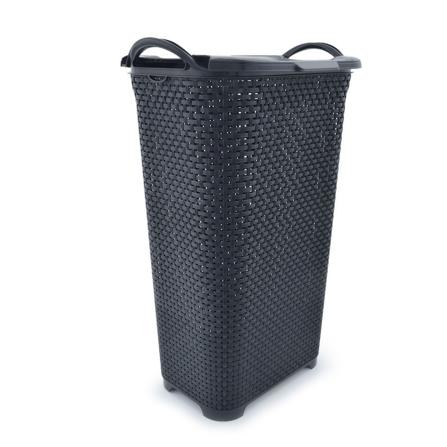 Cesto de Roupa Rattan com Tampa e Alça Basculada 50 Litros Para Roupas Sujas Roupeiro Organizador Plástico Preto