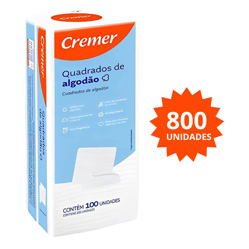 Kit 8 Algodão Quadrado Cremer 100und cada