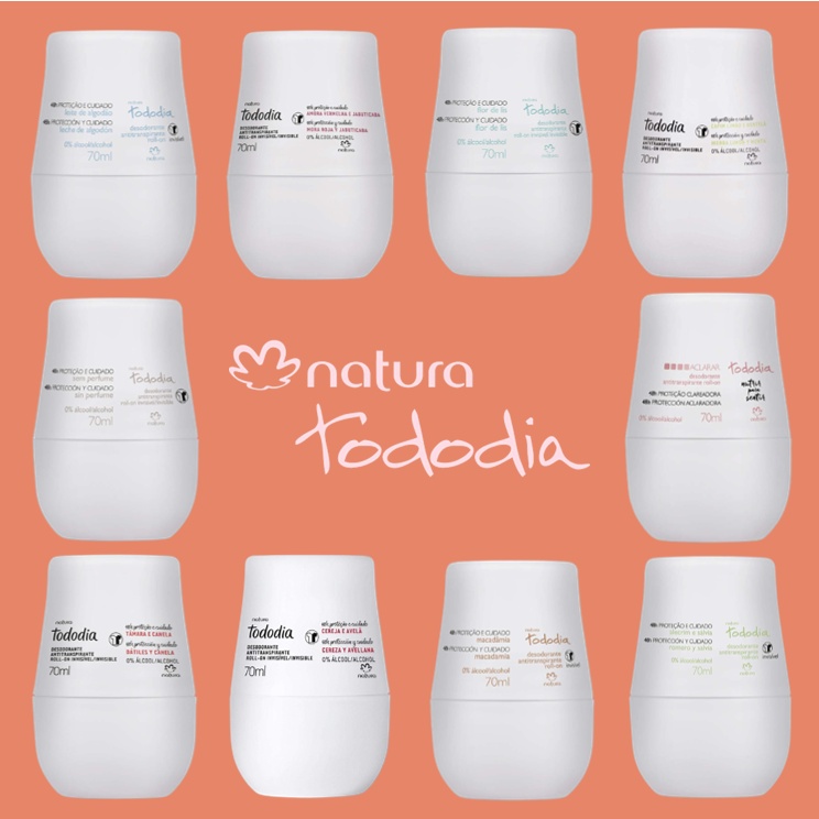 Desodorante Antitranspirante Roll-On Tododia Natura - 70ml (Algodão, Macadâmia, Aclarar, Sem Perfume, Flor de Lis, Amora, Acerola e Hibisco e mais)