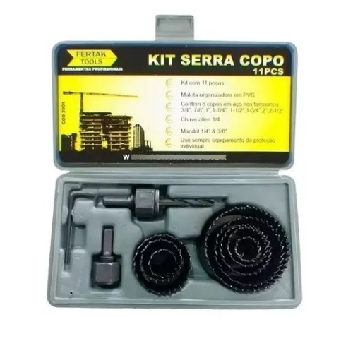 Kit Jogo Serra Copo 11 Peças Para Madeira Gesso Com Estojo Fertak Original