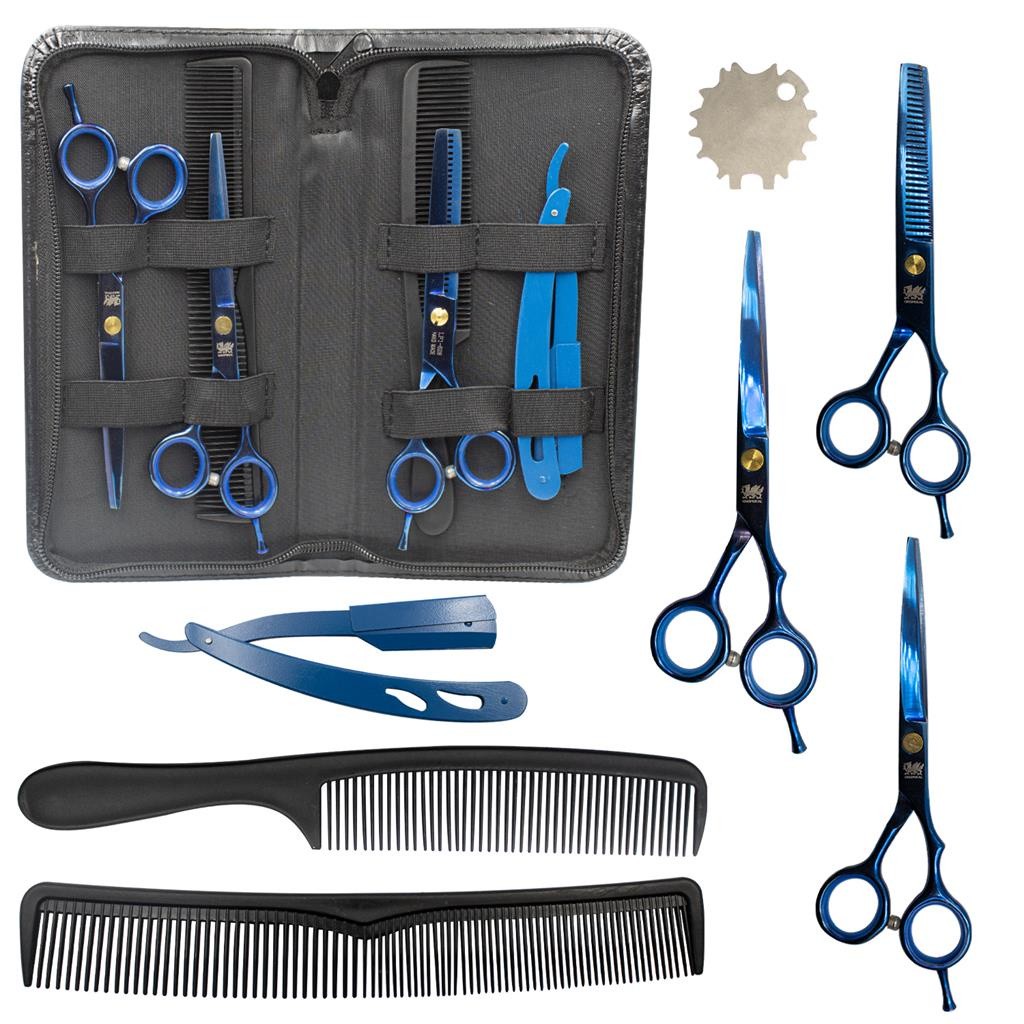 Kit Barbeiro Cabeleireiro Profissional Tesouras Laser Navalha Dentada Navalhete Pentes Estojo