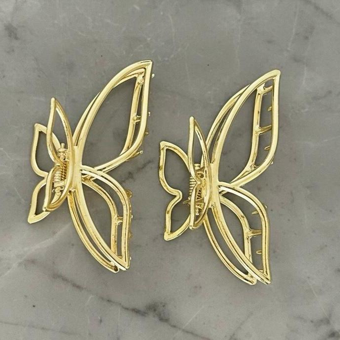 Presilha De Cabelo Piranha Borboleta Metal Banhado Dourado 8cm