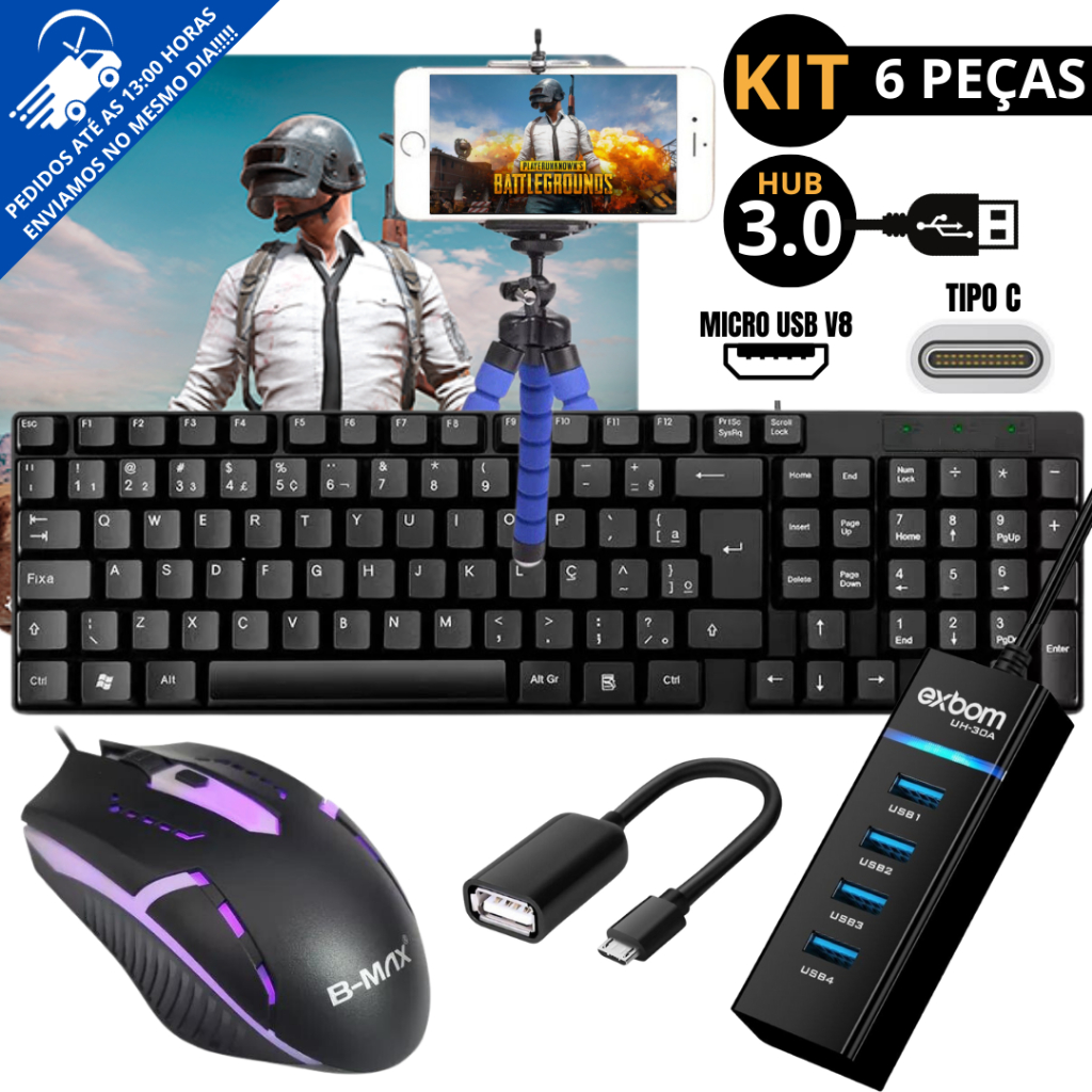 Kit Mobilador Gamer Completo Promoção Para Celular Com Teclado + Mouse Óptico
