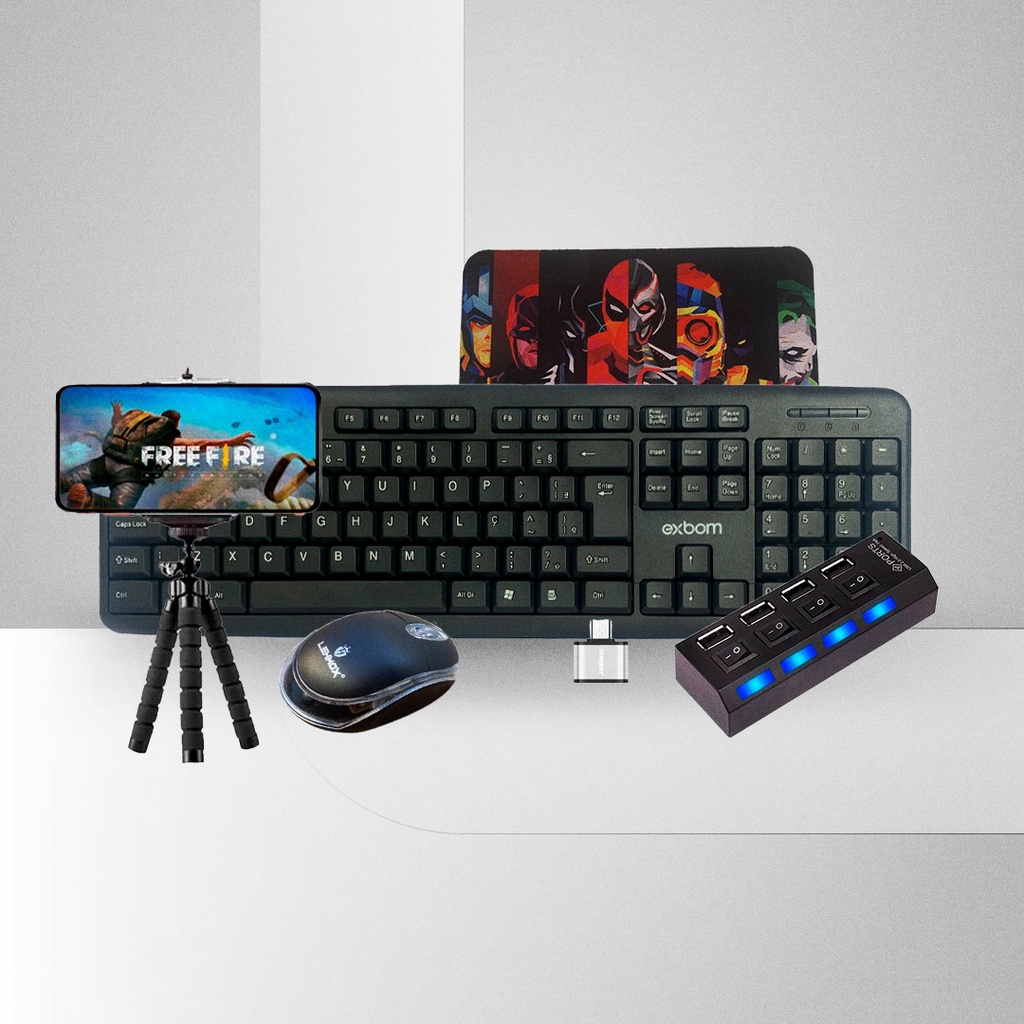Kit Mobilador Gamer Completo Promoção Para Celular Com Teclado + Mouse Óptico Free Fire Cod