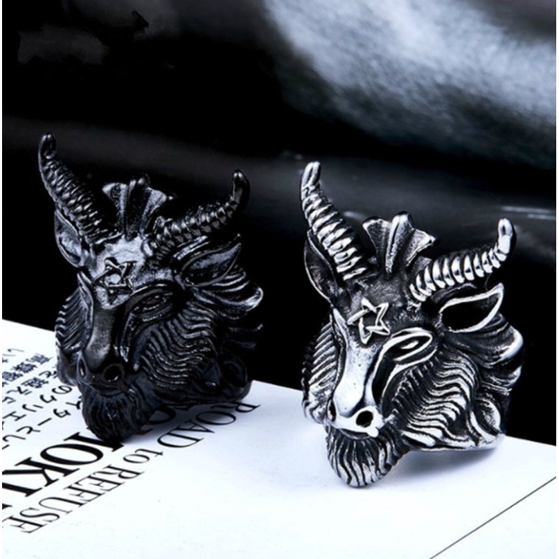 Anel Cavaleiro De Chifre De Ovelha Vintage Punk Satan Aries Zodiac Sheep Horn