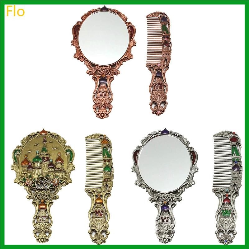 Flo Women s Vintage Castle Portable Cosmetic Conjunto De Espelhos Com Pente Russo