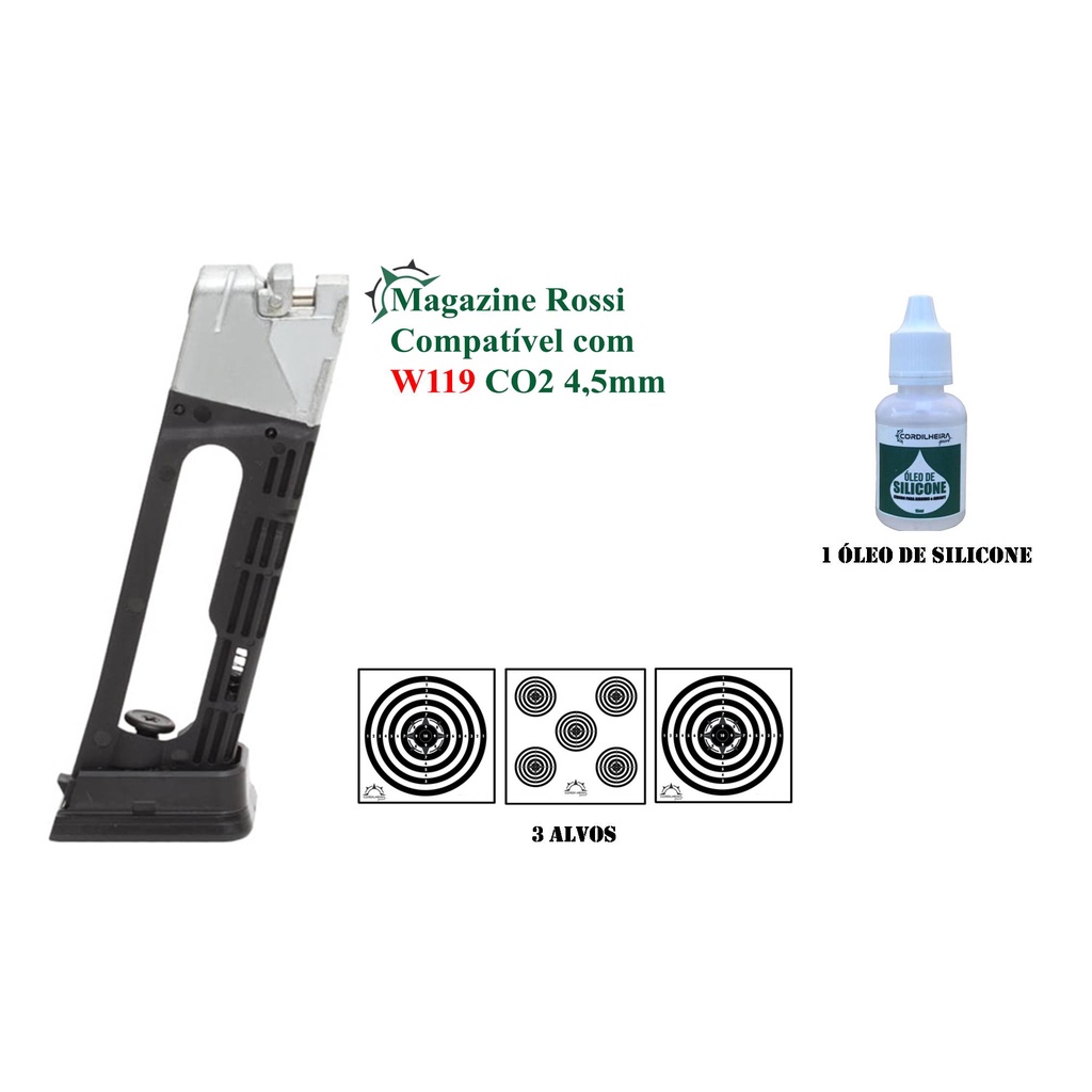 Kit Magazine Compatível com W119 CO2 4,5mm + 3 Alvos + 1 Óleo de silicone