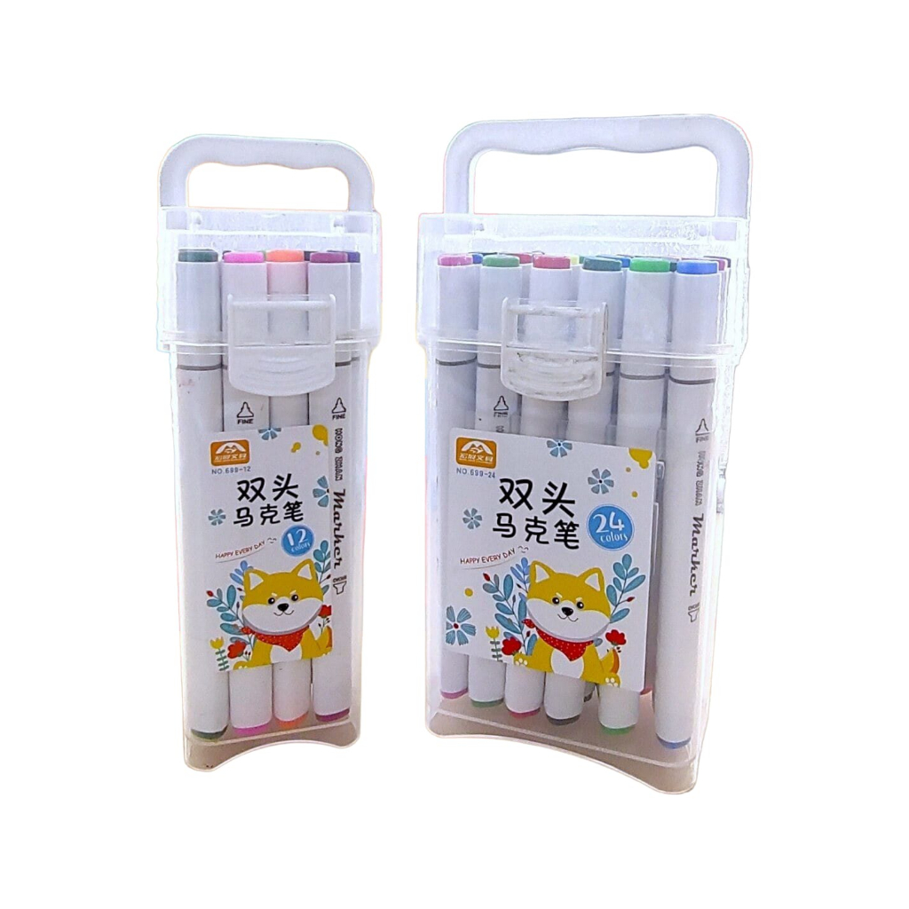 KIT 12/24 Cores Aquarela Conjunto De Canetas Marcadores De Arte Com Ponta Dupla/Tinta Base De Água Papelaria/Escritório/Escola