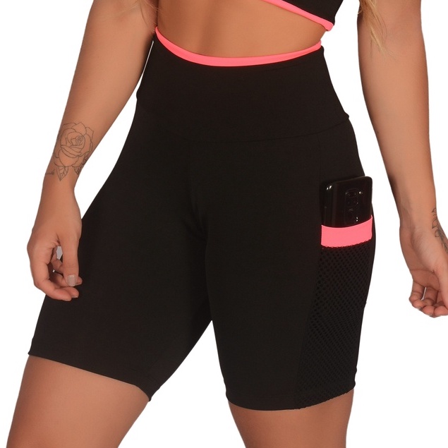 Promoção Short Feminino Fitness Academia com Bolso de Tela Porta Celular | B004