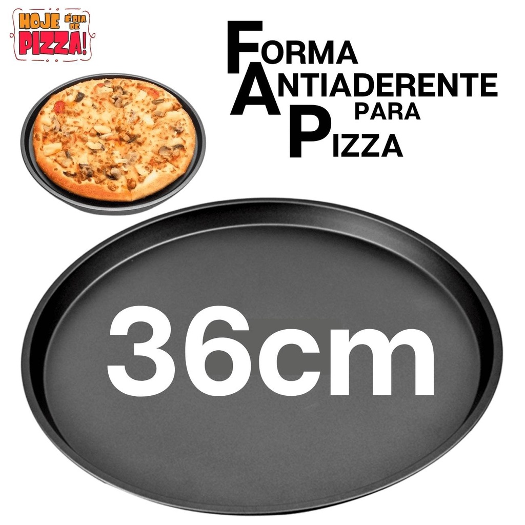 Forma De Pizza Assadeira Antiaderente Aço Carbono Bandeja Grande Teflon 36cm