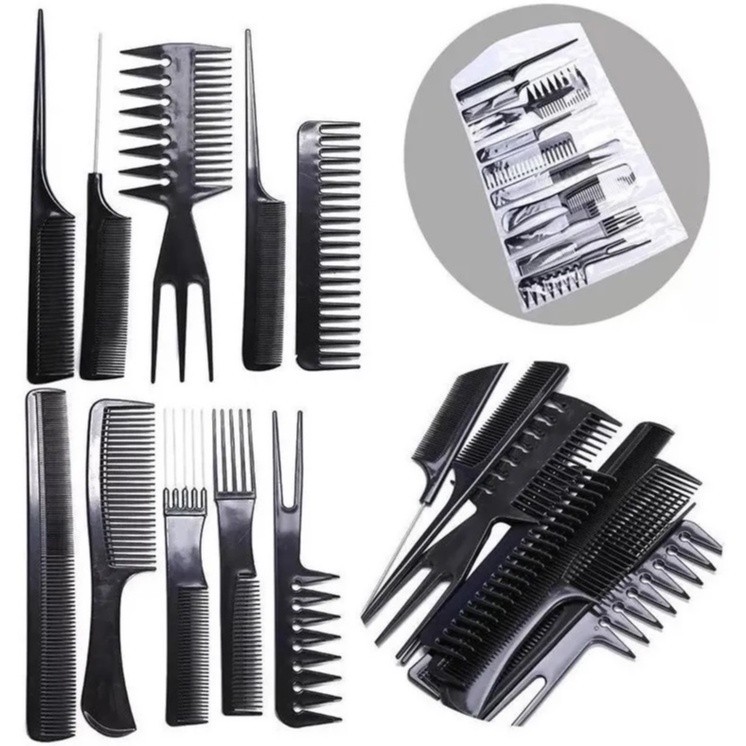 Kit 10 Pentes Cabeleireiro Barbeiro Profissional - Suporta Calor