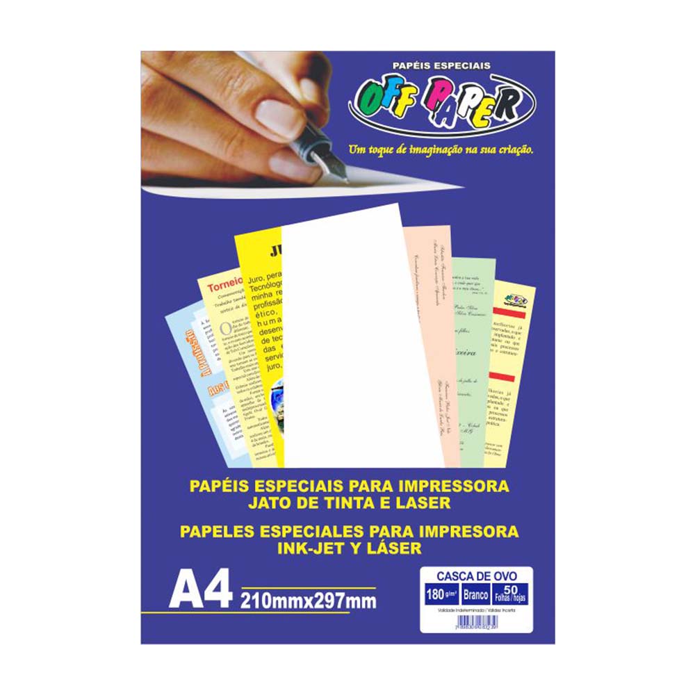 Papel Casca de Ovo A4 180g Branco C/50 Folhas Off Paper