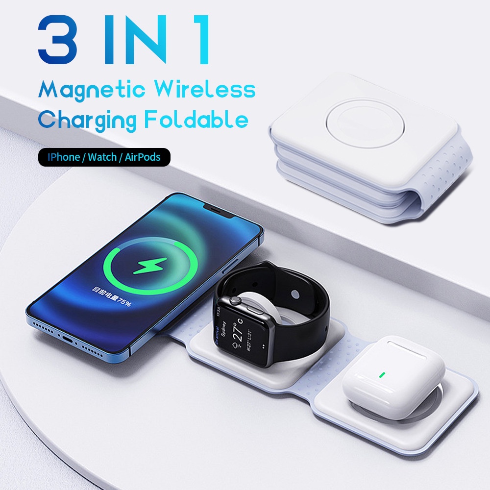 3 em 1 carregador magnético sem fio para Iphone 14promax/13/12/11/Apple Airpods Pro iWatch portátil dobrável doca de carregamento rápida