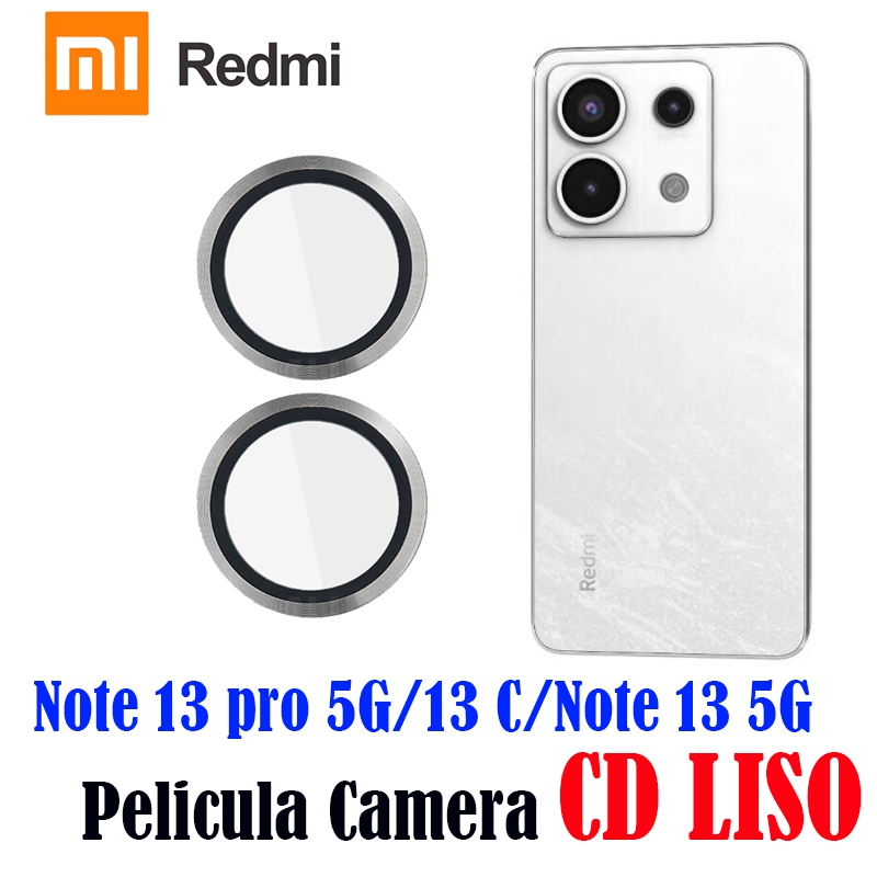 KIT(2 pcs)Película De Câmera Liso Redmi Note 13 5G/13C/Note 13 Pro 5G Com Anel De Metal Protetors De Lentes Vidro Temperado
