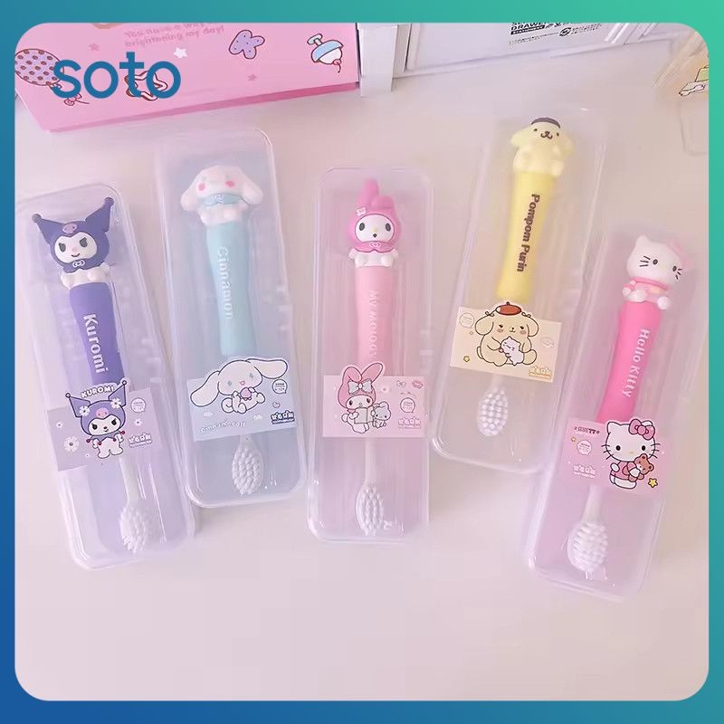 SOTO Sanrio Soft Hair Escova De Dentes Com Caixa Kuromi Hello Kitty Silicone Handle Escova De Dentes Casa Ou