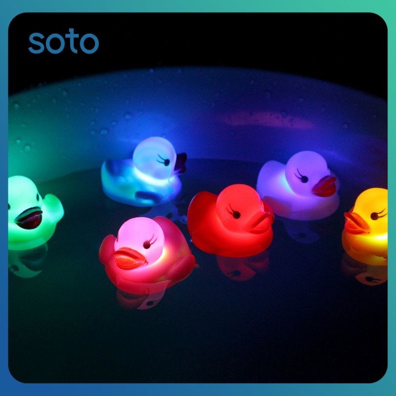 SOTO Pato Luminoso Cerca De 16g Brinquedo Para Brincar Na água Pato De Borracha Fofo Com Luzes LED Brinquedo De Pato Popular Presente Para Chá De Bebê Componentes Eletrônicos Brinq