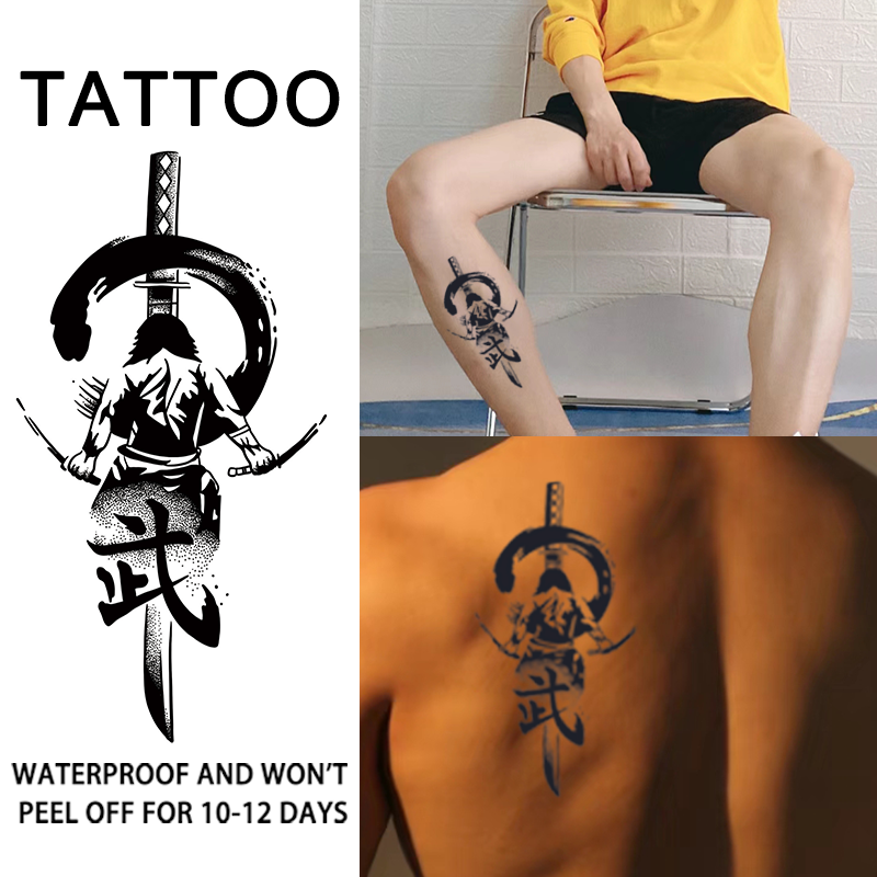 Wu Back Samurai Arm Lasting Waterproof Uma Semana a Duas Semanas Tattoo Stickers Semi-Permanentes Tattoos Temporary Tattoo Stickers Homens Mulheres Fake Tattoos