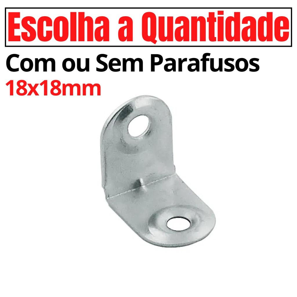 Cantoneira para Móveis Madeira 2 Furos Cadeirinha Mini Zincada com Parafusos Kit Cantoneiras 18x18 com Parafuso
