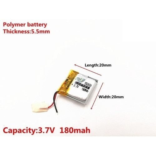 Bateria 180 Mah 3,7 V 5,5mm X 20mm X 20mm C/ 2 Fios 552020