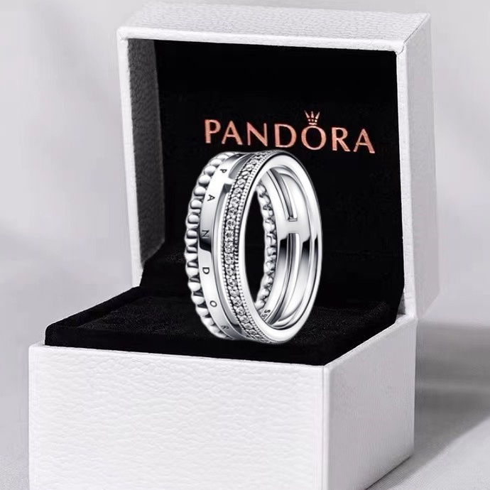Com Caixa Anel Pan Ring Original Fêmea Logotipo Pavé Três Em Um S925 Silver Light Luxury Premium Jóias De Luxo De Casal