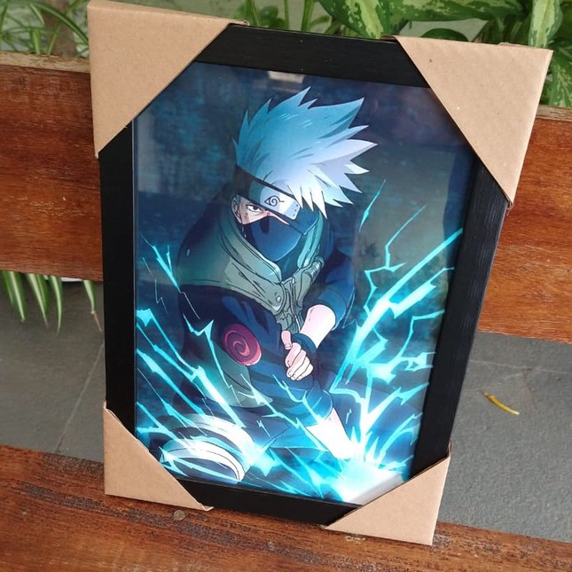 Quadro para decoração com moldura e vidro anime Naruto Kakashi Hokage Jounin chidori Sharingan Itachi sasuke