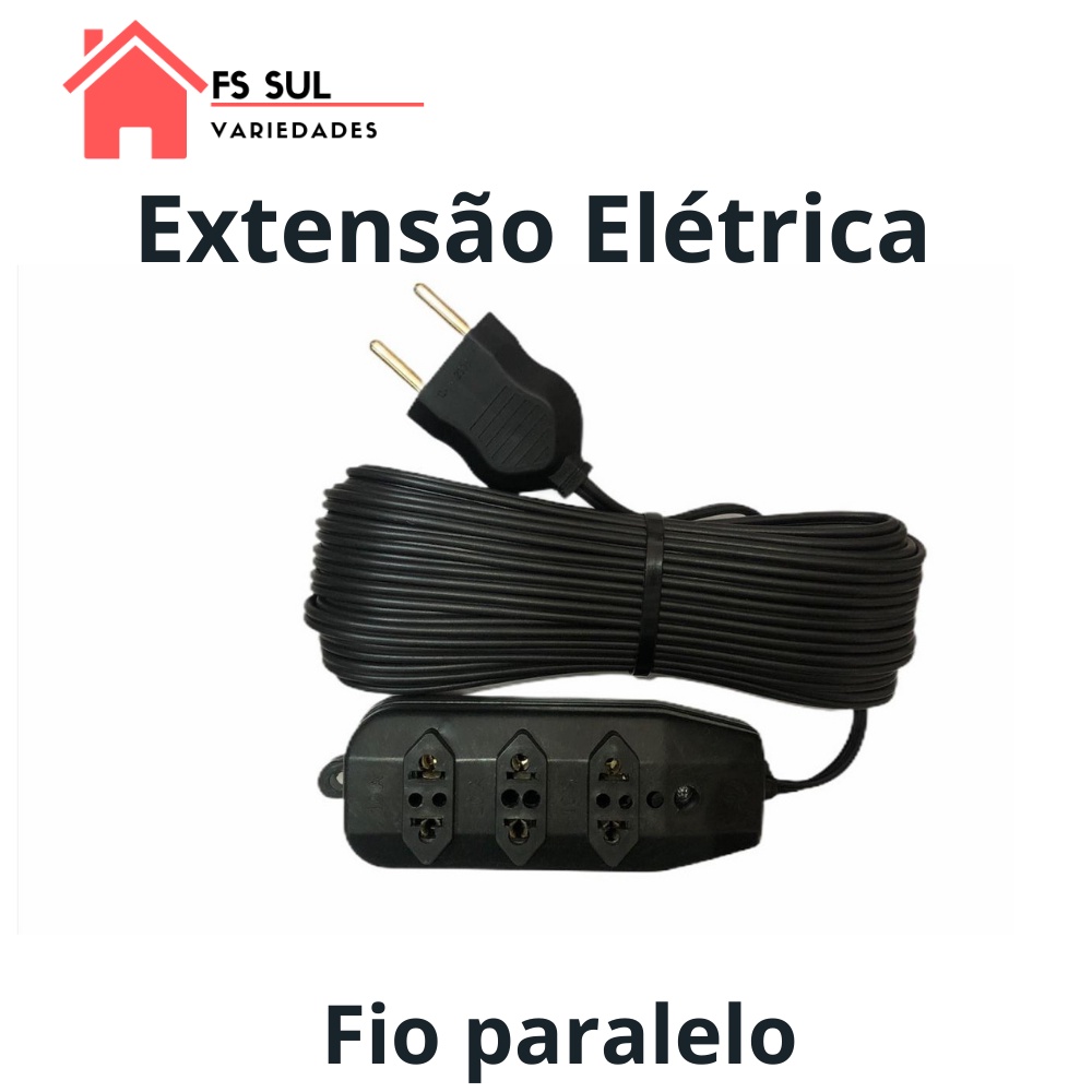 Extensão elétrica Preta ( 5; 15 ; 20 ; 25 ; 30 metros - cabo 2 x 1,0) Padrão Novo/antigo -10/20A