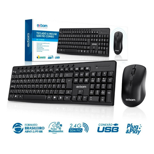 Kit Teclado E Mouse Sem Fio Exbom Bk-s1000m 2.4ghz Usb
