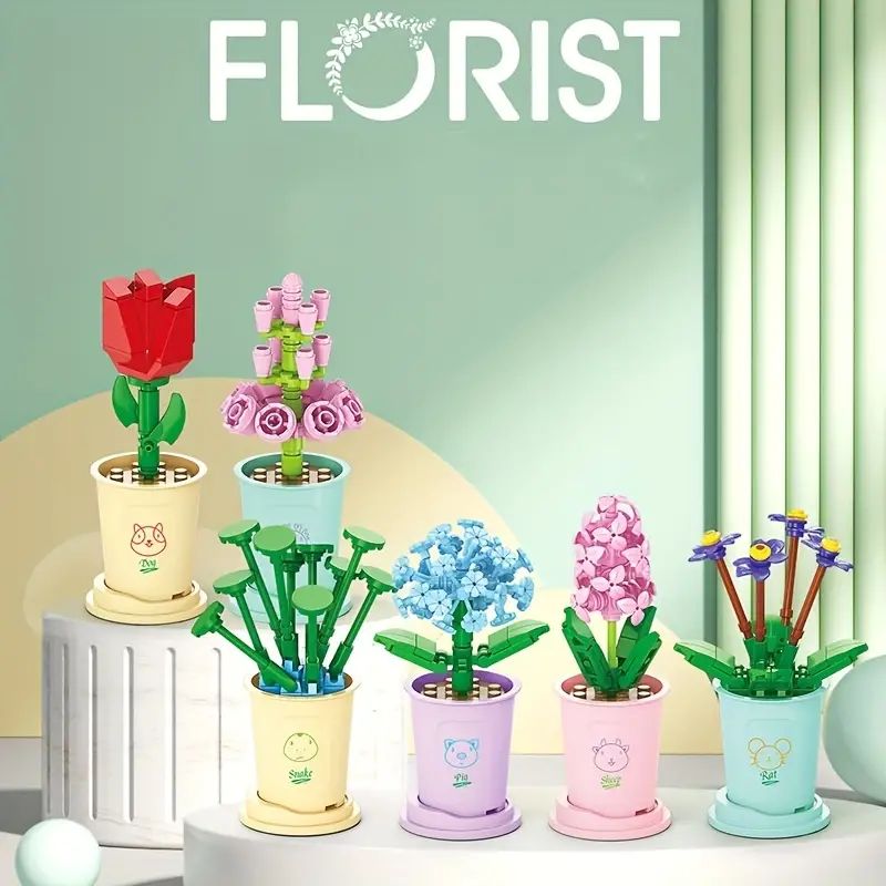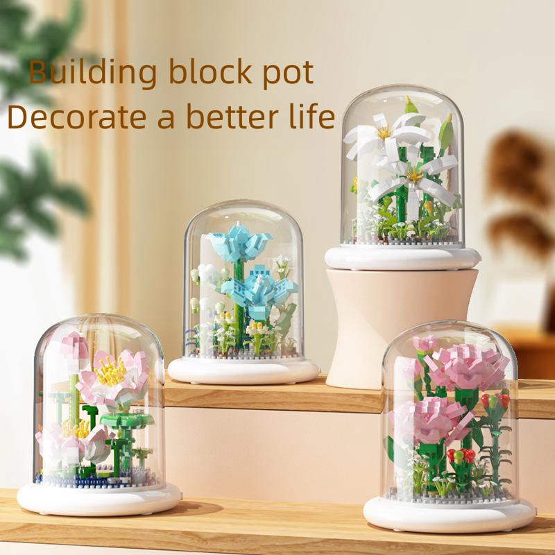 Bloco de Construção Imortal Flor Educacional Montagem de Bouquet Decoração de Mesa Simulação de Flor para Crianças Partic