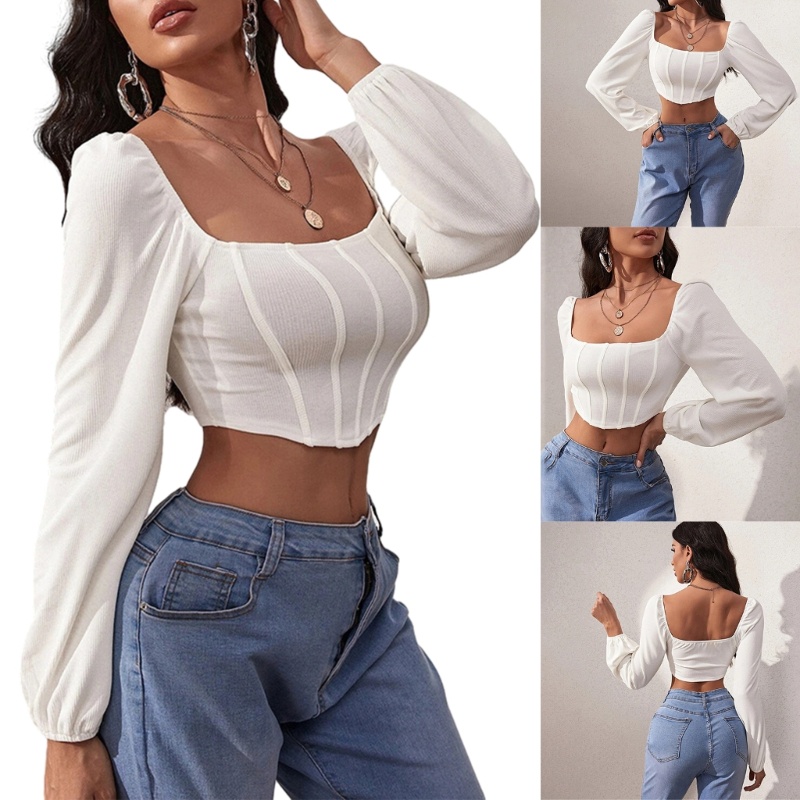 Menção Camiseta Pregueada Feminina De Pescoço Quadrado Camisetas Slim Fitted Tops Bouse Y2K Streetwear