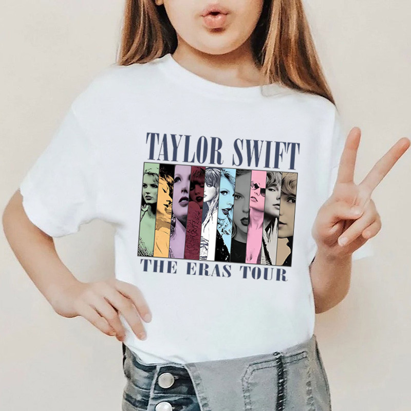 Camiseta Meninos/Meninas Cantora Famosa Taylor ERAS Tour Swift Print Kids Crianças Roupas Summer Casual Baby Tops Tees