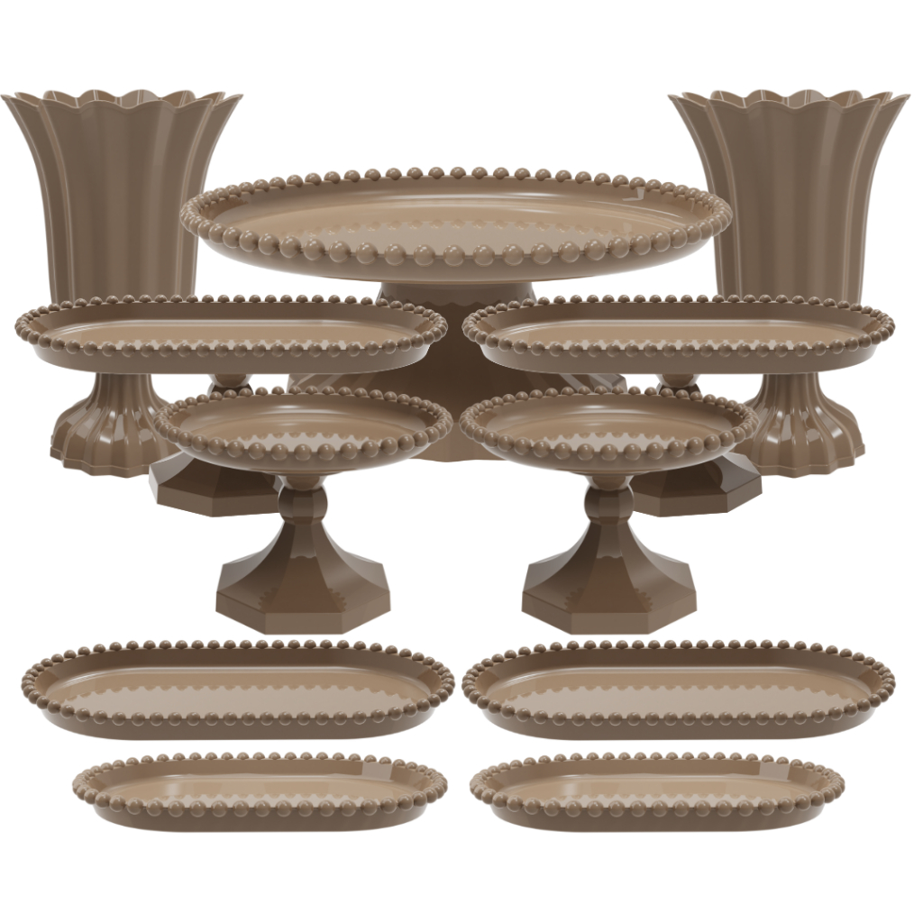 Kit 1 Boleira Pérola,2 Vasos,2 Boleiras Oblonga, 2 Mini Pérola, 2 Bandejas 25 e 2 Bandejas 20