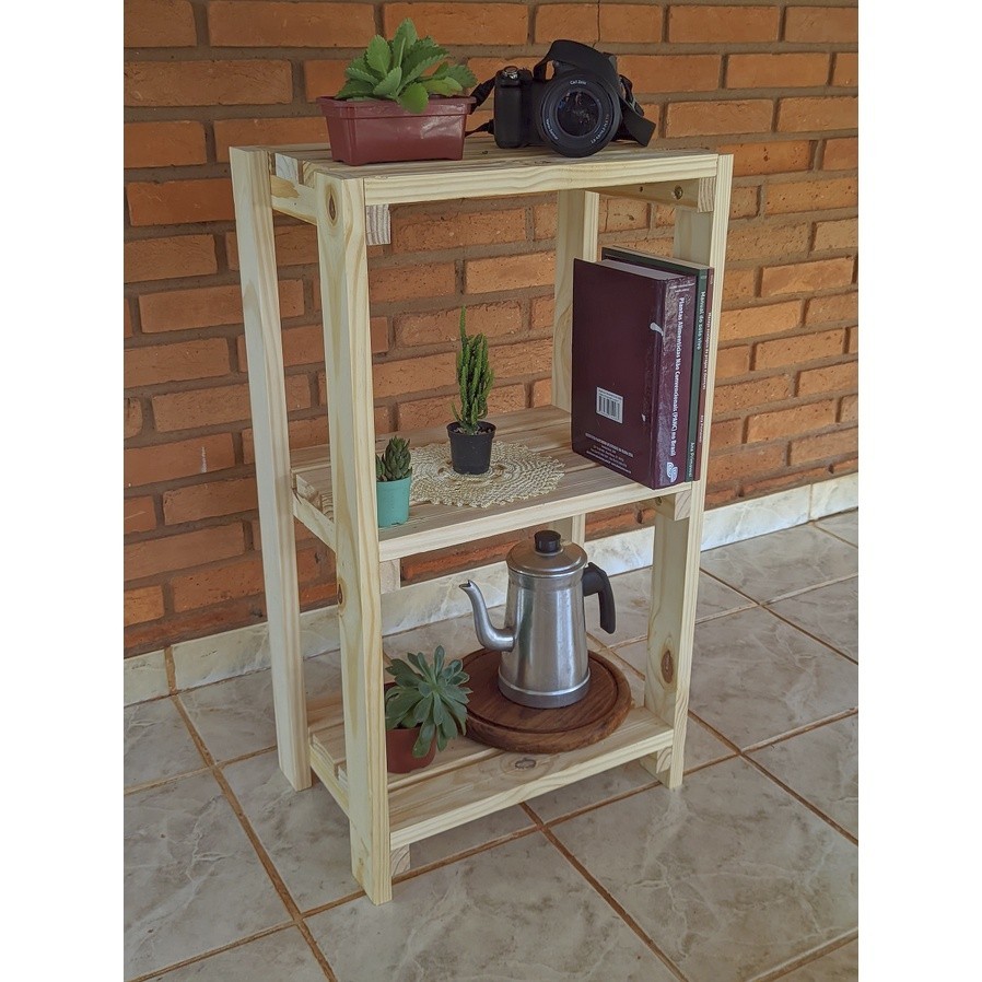 Prateleira Organizadora Estante de Madeira Maciça Pinus com 3 Prateleiras