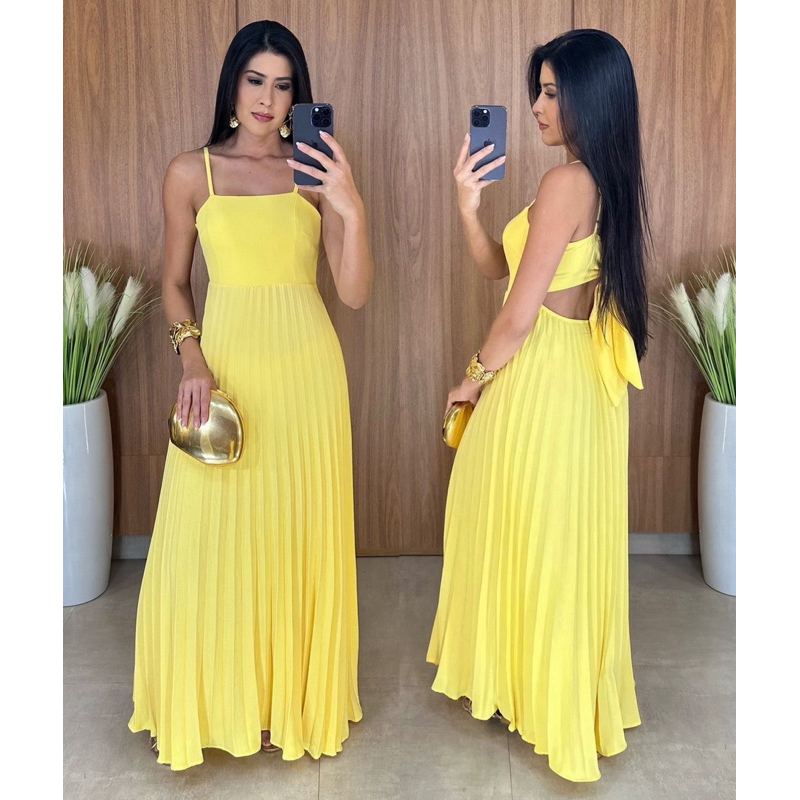 Vestido Longo Feminino de alça plissado moda elegante Natal e ano novo