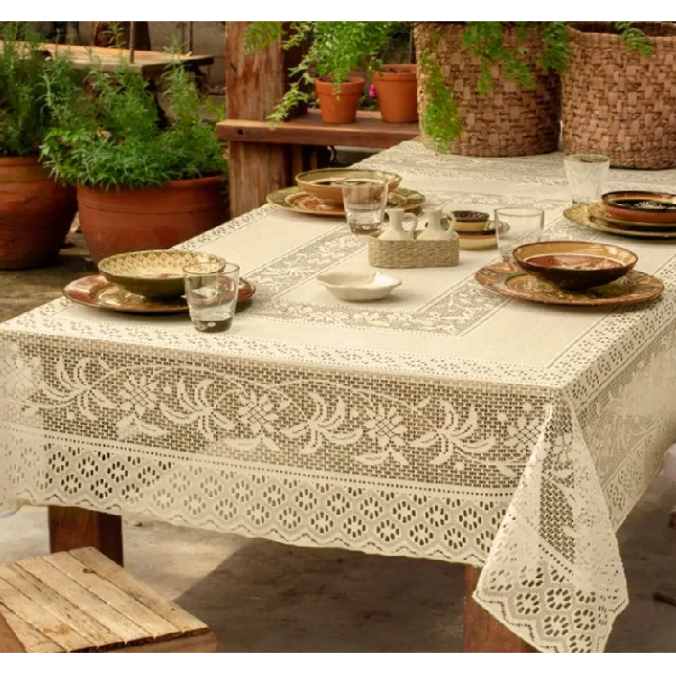 ToalhaDe Mesa De Jantar Tecido Em Renda SuperLuxo 6 Cadeiras