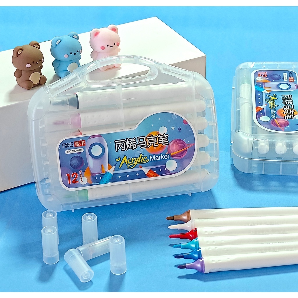 KIT 12 cores Marcadores de acrílico crianças canetas de pintura conjunto marcador de tinta graffti caneta oleosa papelaria para pintura rupestre