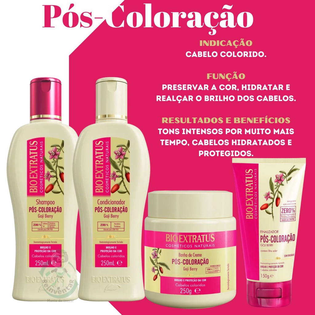 Kit Bio Extratus Pós Coloração Proteção Da Cor Shampoo Condicionador e Banho de Creme 250g/ml e Finalizador 150g