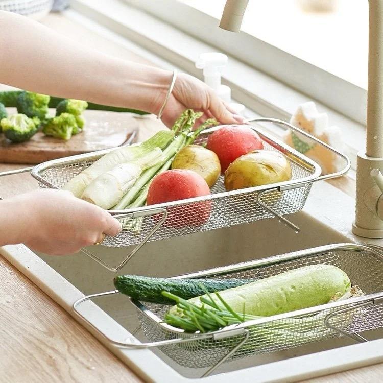 KIT 2 Escorredor de pia inox peneira Alça retrátil fruteira alimentos