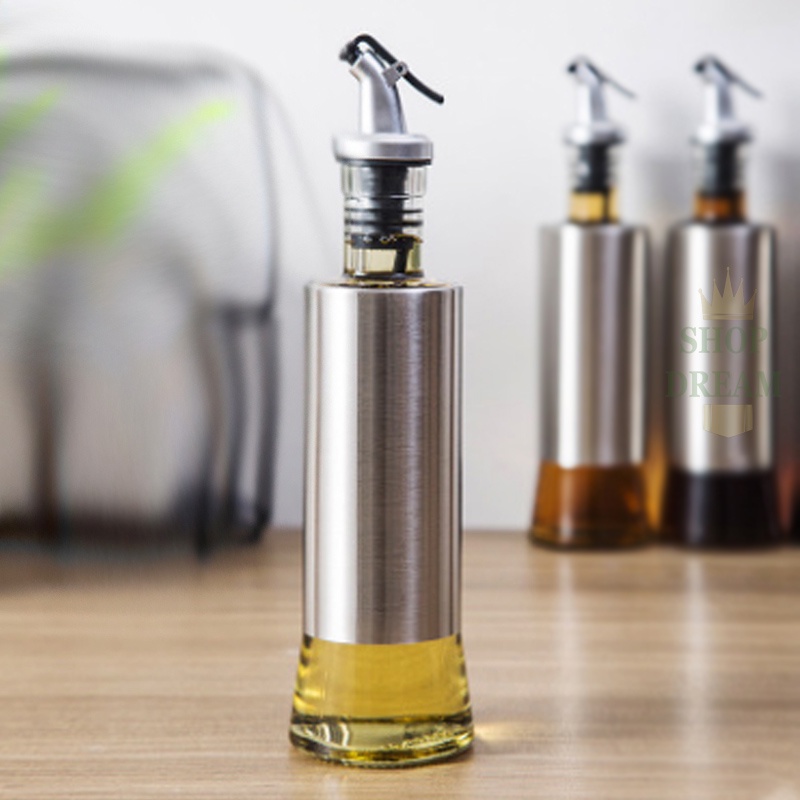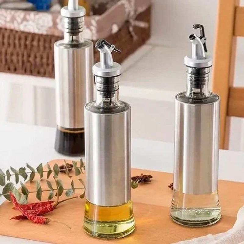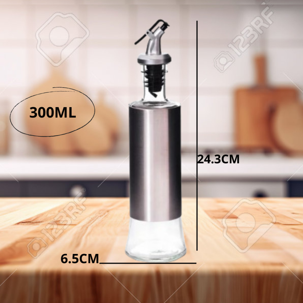 Porta Azeite Vinagre 300 Ml Em Vidro E Aço Inox Com Bico Dosador Galheteiro