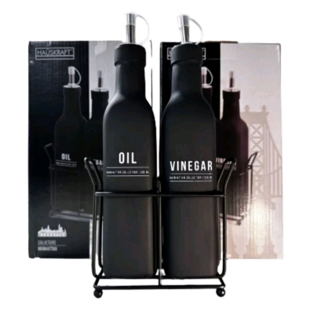 Kit Galheteiro 500ml Porta Azeite e Vinagre de Vidro Premium e Aço Inox com Dosador 500ml