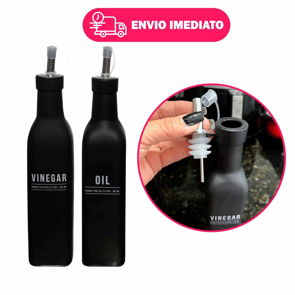 Galheteiro 300ml Porta Azeite e Vinagre de Vidro Premium e Aço Inox com Dosador