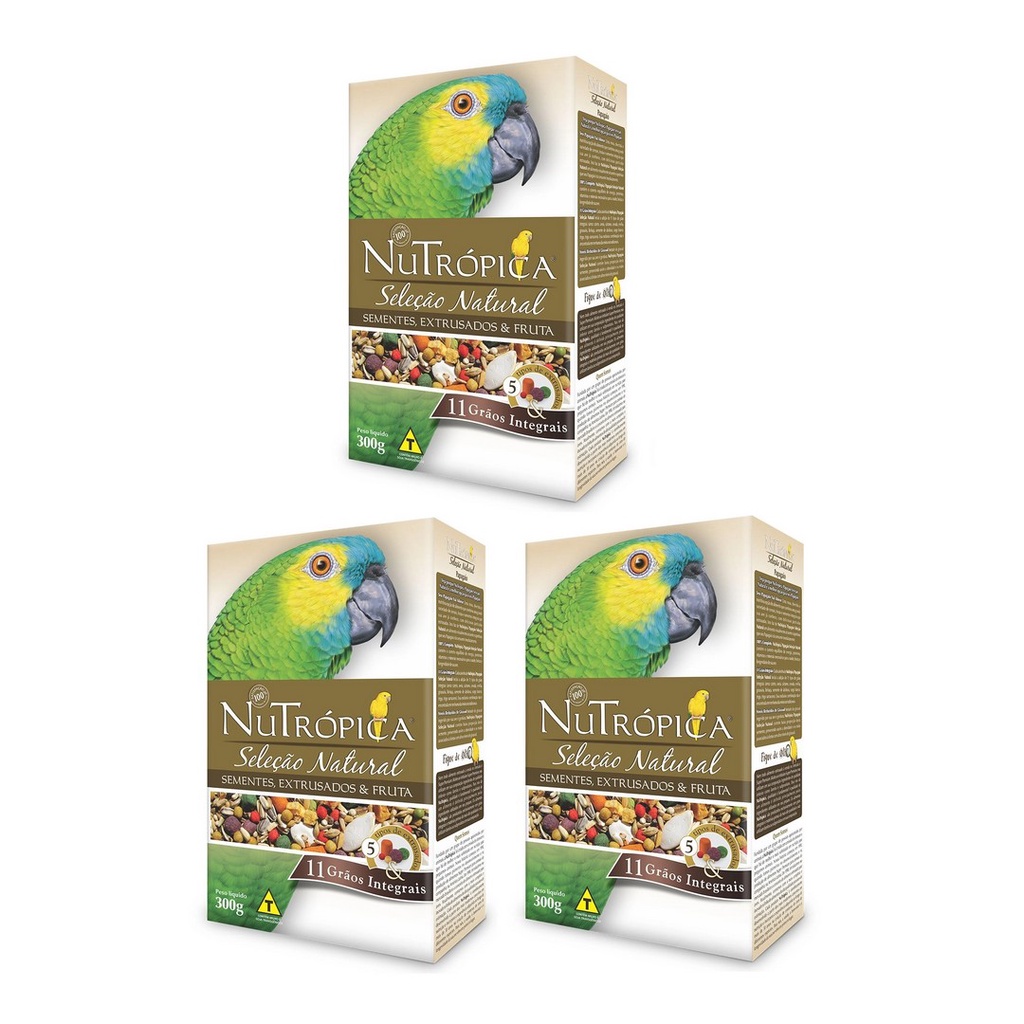 Kit 3 Unidades Ração Seleção Natural Papagaio 300g Nutrópica