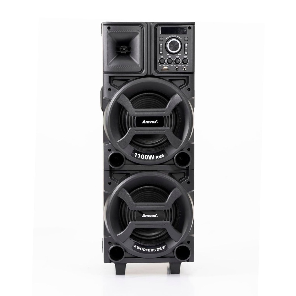 Caixa de Som Amplificada Com LED Amvox ACA 1101 Black Duplo 8-1100W RMS Festas Karaokê Eventos