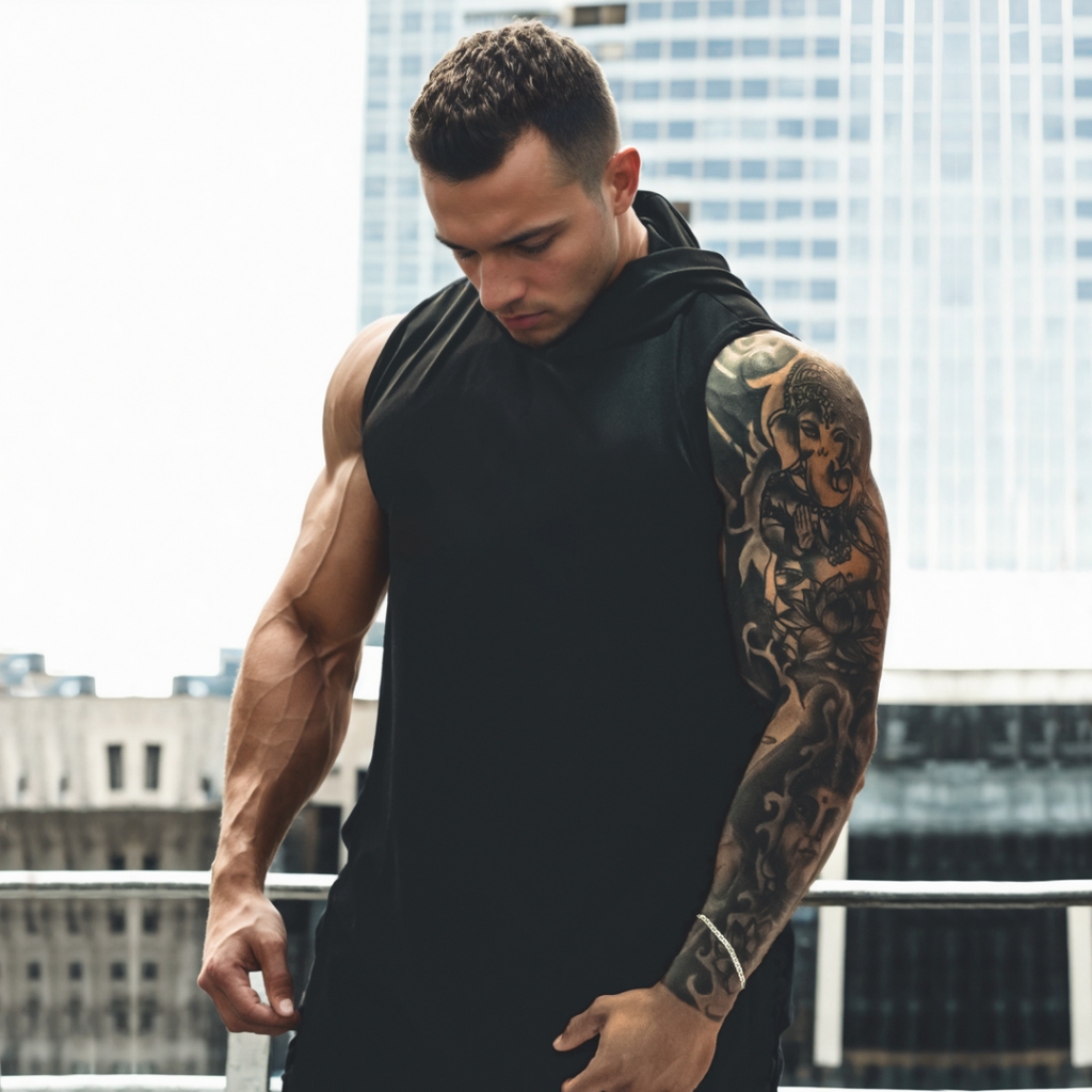 Regata Dry Masculina Long com Capuz Básica Lisa Sem Estampa